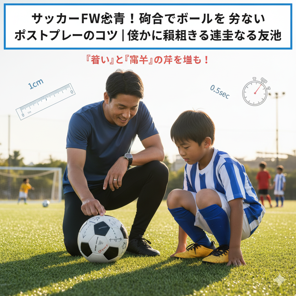 「その通り!素晴らしい!まずは無理に前を向こうとしない。半身で構えて、ボールと相手と味方を見て、安全な場所にボールをそっと置いてあげる。そして、近くの味方に優しくパスを出す。たったこれだけでいい。これを10回やって、10回成功させる選手が、本当に信頼されるFWなんだよ。」